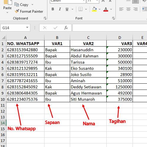 Karena setiap pesan berisi variable yang berbeda, seperti Nama, Jumlah Tagihan, dan lainnya sesuai yang Anda inginkan.